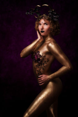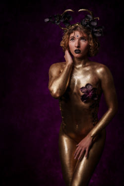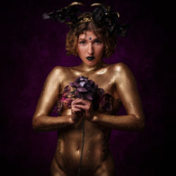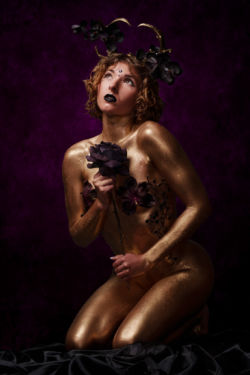 A stunning Claudia channels the Queen of Nature with amazingly graceful posing. Claudia is a true professional, and collaborated on the entire look, right down to flower choices, crafting the headpiece, and the appliques she glued to her body. Claudia needs no direction, and a true partner in this collaboration. Highly recommend anyone needing a creative to reach out to her, or give her a follow to watch this woman grow as a creative.