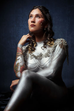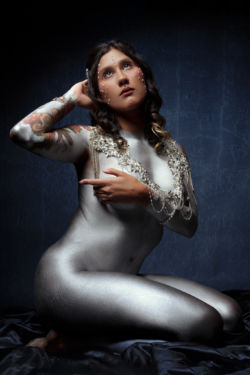 An alchemy of ProAiir Satin Finish, our private stock of silver mica, pixel dust, magic, and a stunningly beautiful Daniela transforms into The Silver Surfer. Daniela has shot with some of the best Fine Art Photographers, and it’s always an honor & pleasure to create with her. She’s an active participant in the creative process who’s posing is always on point. Book, or follow her journey as a Fine Art model on Instagram.